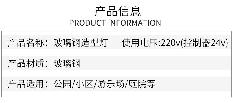 燈的發(fā)明給這個(gè)世界帶來了光亮,如今,景觀燈光也成為當(dāng)今裝扮社會(huì)的一種方式。景觀燈與普通燈的要求不一樣,不僅需要美觀大氣,還要適合長期放置在室外,因此體積不能大,質(zhì)量要輕,越節(jié)能越好,因此走起了新材料、新光源、新創(chuàng)意的“新”路線。如今玻璃鋼也成為了景觀燈光的主要材質(zhì),那是因?yàn)?/span>具有防潮防腐、質(zhì)輕堅(jiān)固等特點(diǎn),適合長期放室外??梢姴Aт摬牧鲜菓?yīng)用到了各行各業(yè)。彩繪玻璃鋼動(dòng)物造型燈無論實(shí)在白天還是在晚上,都具有藝術(shù)觀賞性,因其使用的是彩繪制作手法,白天動(dòng)物身上的彩繪圖案也具有獨(dú)特的視覺感受,夜晚燈光亮起,燈光與圖案的配合,又是另外一番景象。
